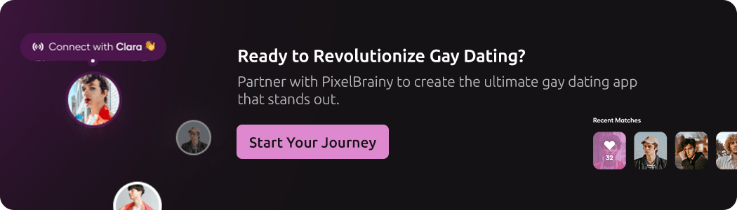 PixelBrainy, a leading app development company offers comprehensive support for your gay dating app development journey, from concept to launch and beyond. Our experienced team specializes in creating inclusive, user-friendly apps for the LGBTQ+ community.