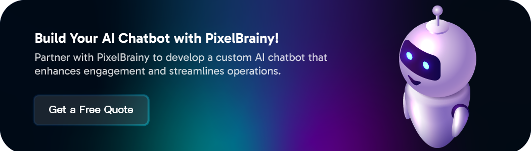 Tip: Choose to build AI chatbot, virtual assistant, or non-AI chatbot post analyzing your business requirements. Contact a leading AI chatbot development company, like PixelBrainy, to get exceptional assistance.