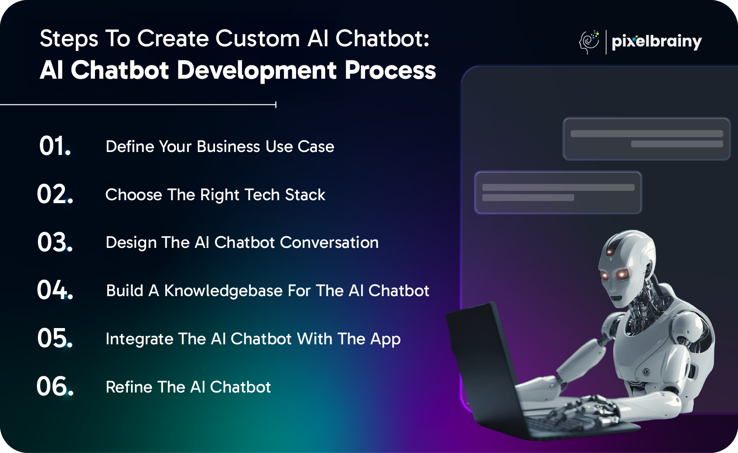 This guide will cover how to develop a custom AI chatbot in 2025, working, reasons to invest, top AI-based chatbots gaining traction, cost estimate, features to consider, and every aspect you need to build an AI chatbot.