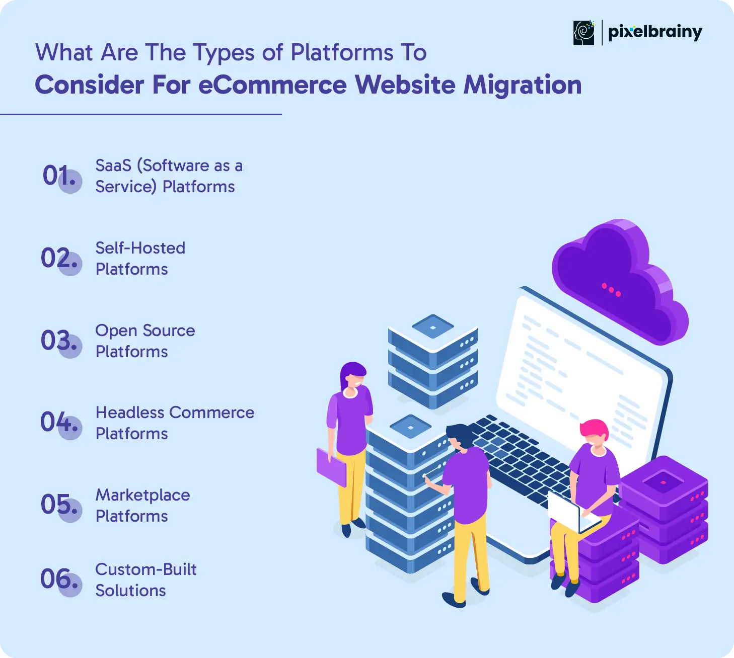Below are the six major types of platforms you can consider when replatforming eCommerce websites: