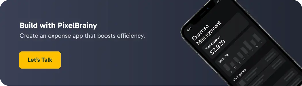 PixelBrainy, specializes in expense management mobile app development, delivering robust, compliant, and intuitive enterprise app development solutions. Our proficiency ensures effortless financial tracking, automation, and real-time insights.