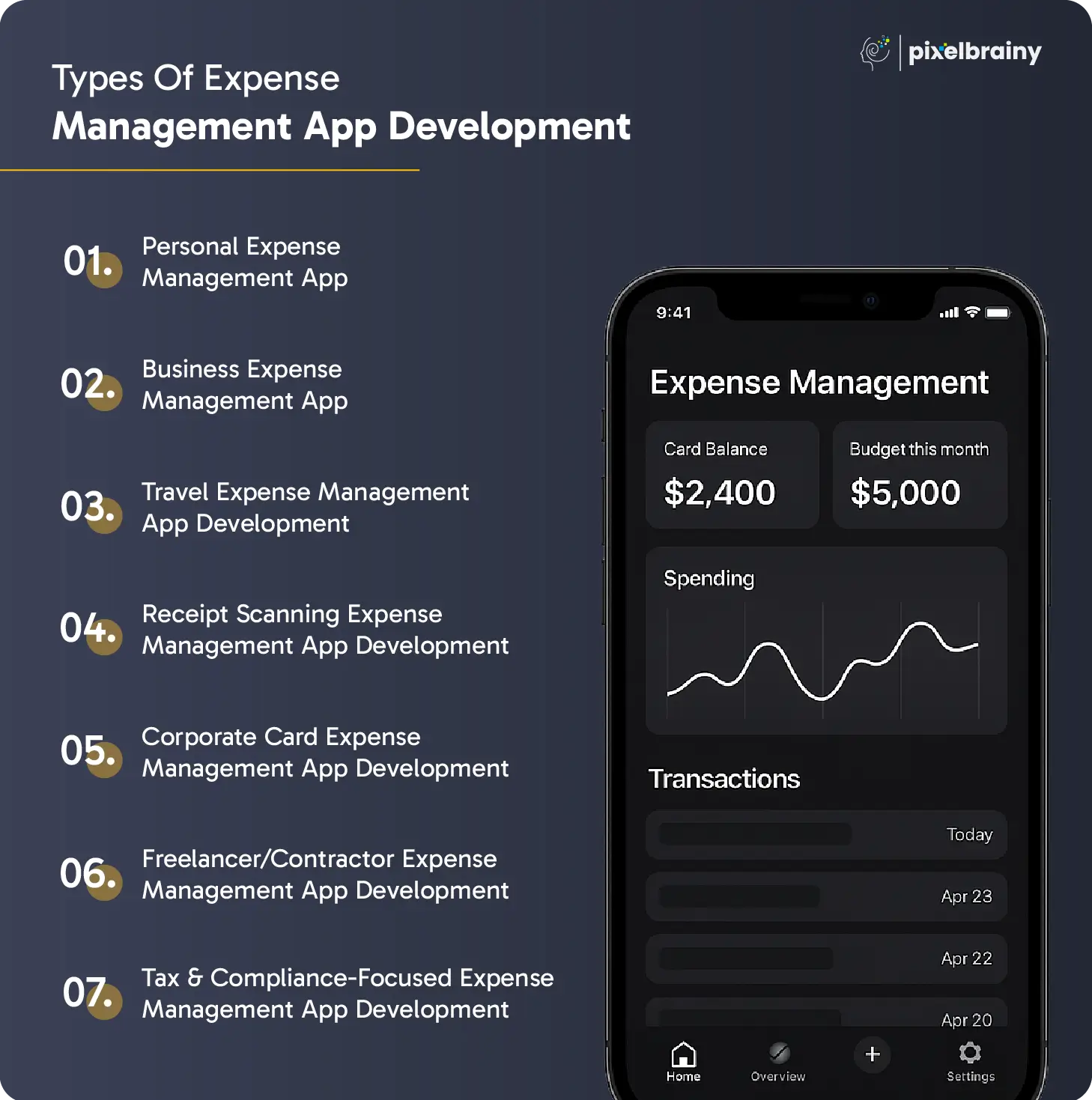 Expense management apps are built to meet the needs of different users and businesses. Below are the key types you can create for your target audience.