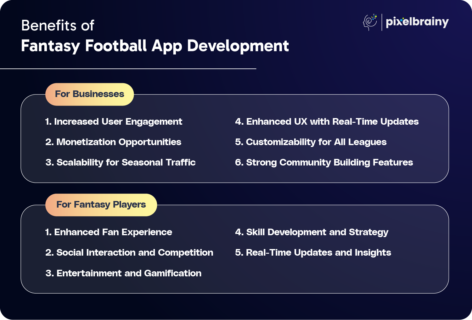 PixelBrainy arrives with a perfect combination of innovation, expertise, and user-centered approach, making it an ideal choice for startups and businesses looking to launch a top-tier fantasy football application.