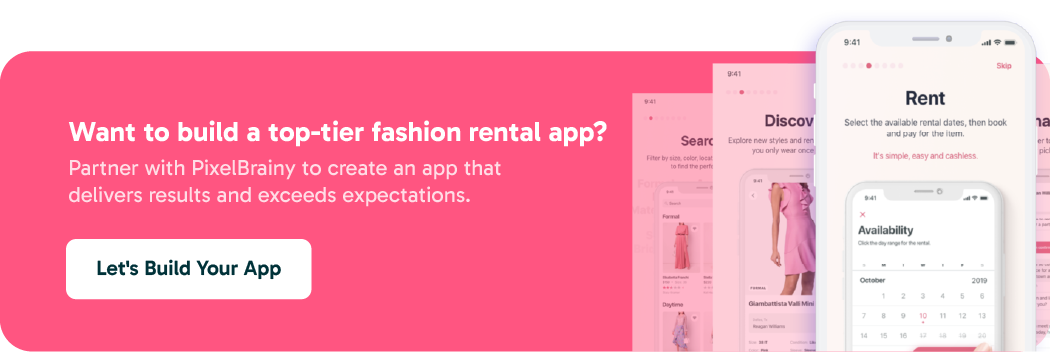 Choosing a reliable mobile app development partner is important for building a successful fashion rental mobile app. At PixelBrainy, we are experts at delivering custom app solutions that resonate with your business objectives.