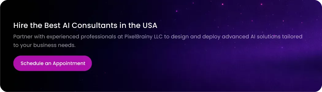 If you are planning an AI-driven project, consider partnering with PixelBrainy LLC. Book an appointment today to discuss your AI project and explore how expert consultants can help bring your AI vision to life.