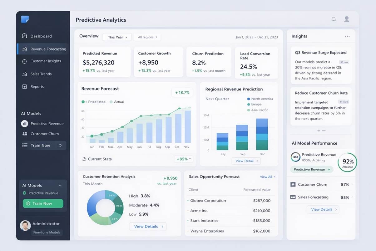 Predictive analytics platforms use machine learning models to analyze historical business data and forecast future trends. Organizations use these systems to predict customer behavior, demand patterns, financial performance, and operational risks.