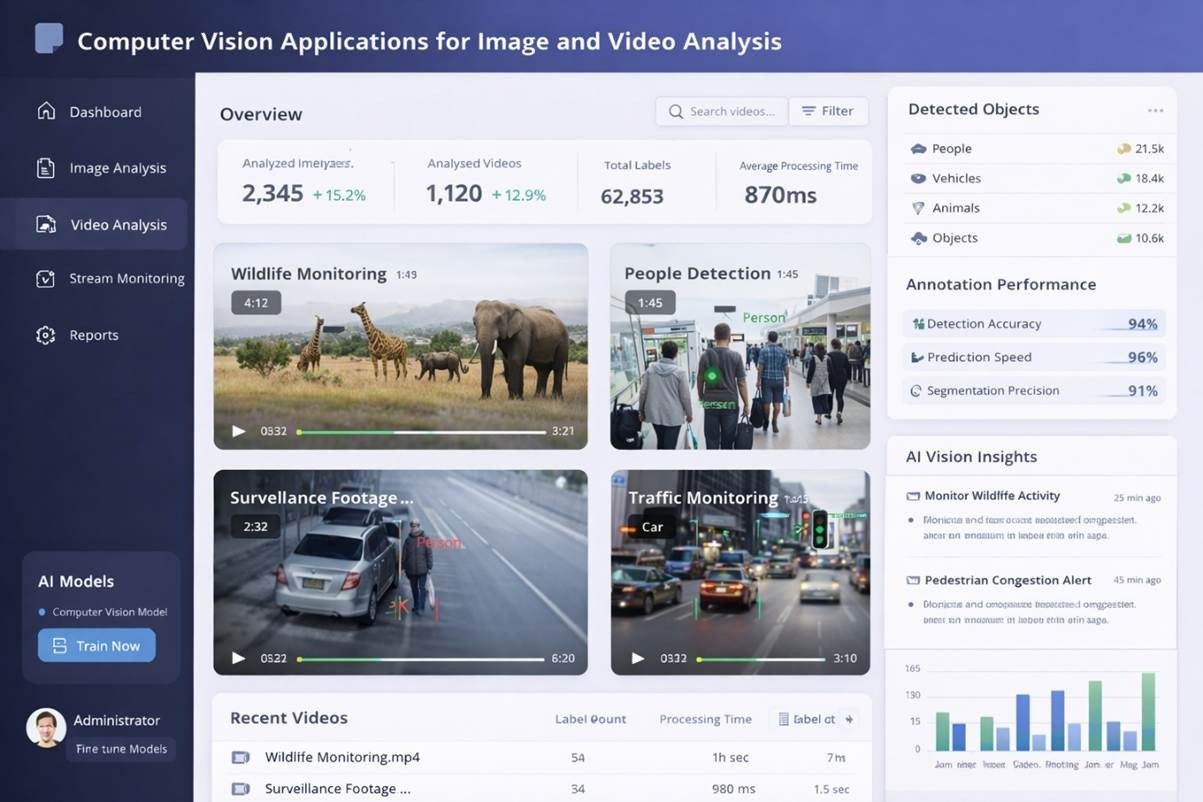 Computer vision technologies allow machines to interpret visual data from images and videos. Businesses use these systems for applications such as quality inspection in manufacturing, facial recognition, object detection, and visual analytics.