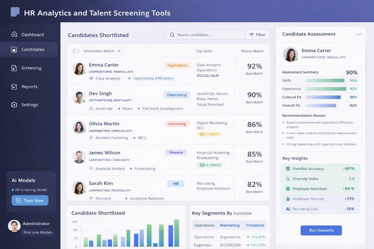 Recruitment and workforce management can be enhanced using AI-powered HR platforms. These systems analyze candidate resumes, skills, and behavioral data to identify the best candidates for specific roles.
