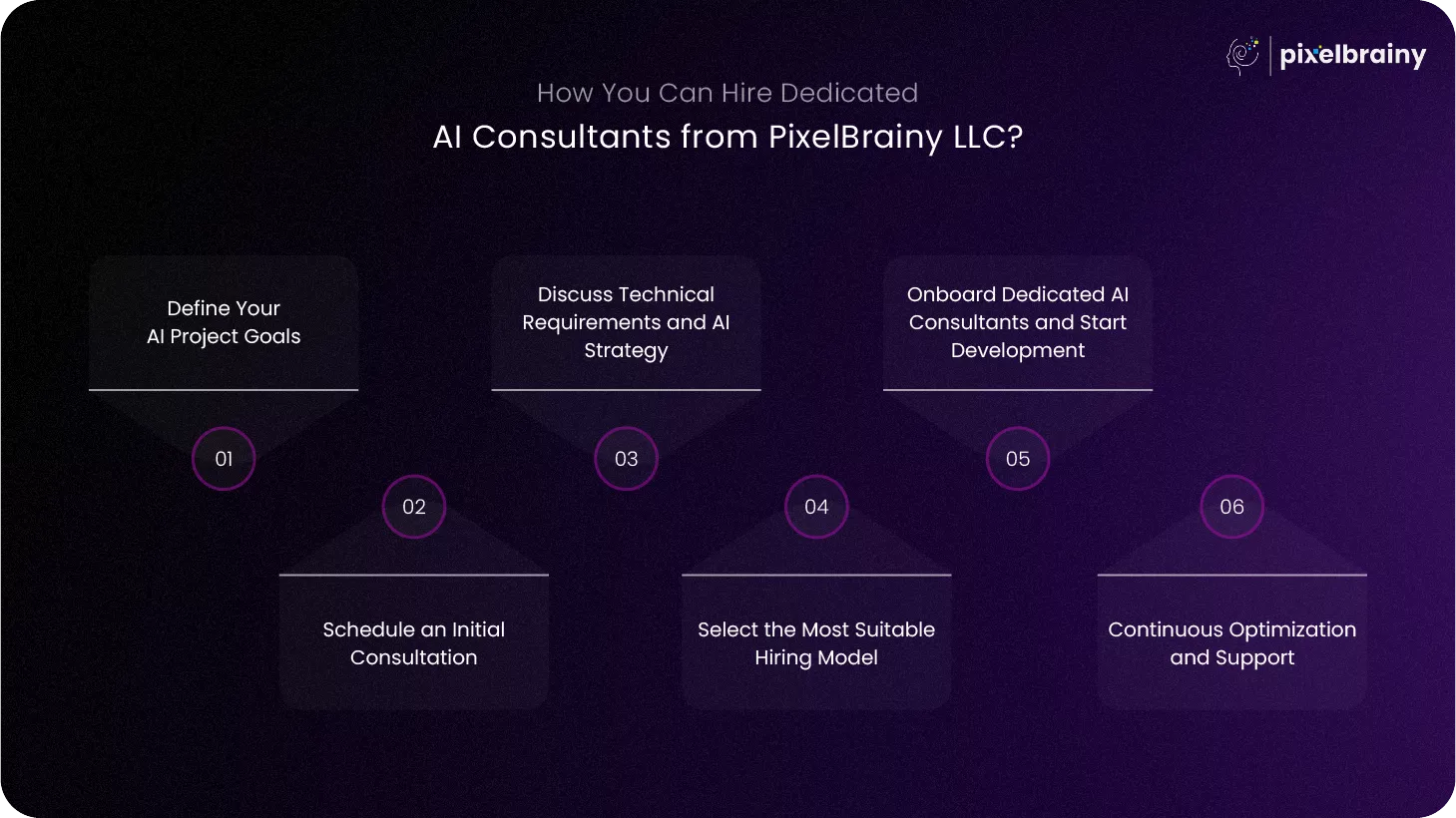 By following this structured process, organizations can effectively Hire AI Consultants from PixelBrainy LLC in USA and successfully implement intelligent technologies that drive automation, innovation, and long-term digital transformation.