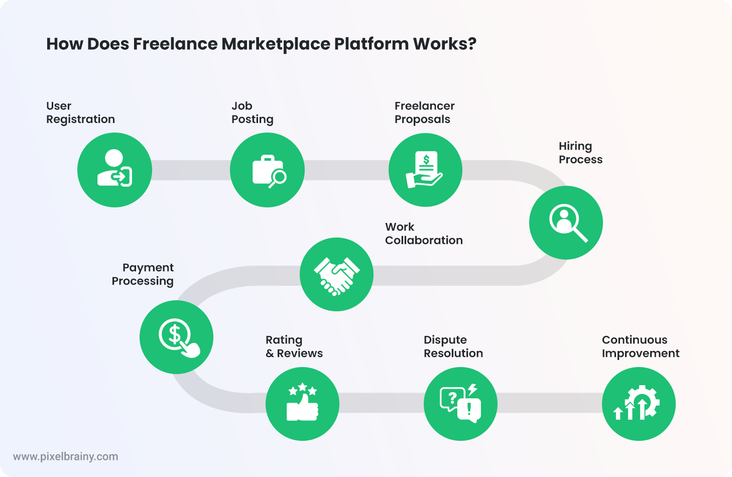 As a top software development company, PixelBrainy here how our expertise can contribute to the development of a competitive freelance marketplace platform like Upwork and Freelancer. At PixelBrainy, we understand the intricacies involved in creating a full- fledged and user-centric platform that stands out in the highly competitive gig economy. Here's how we can help: