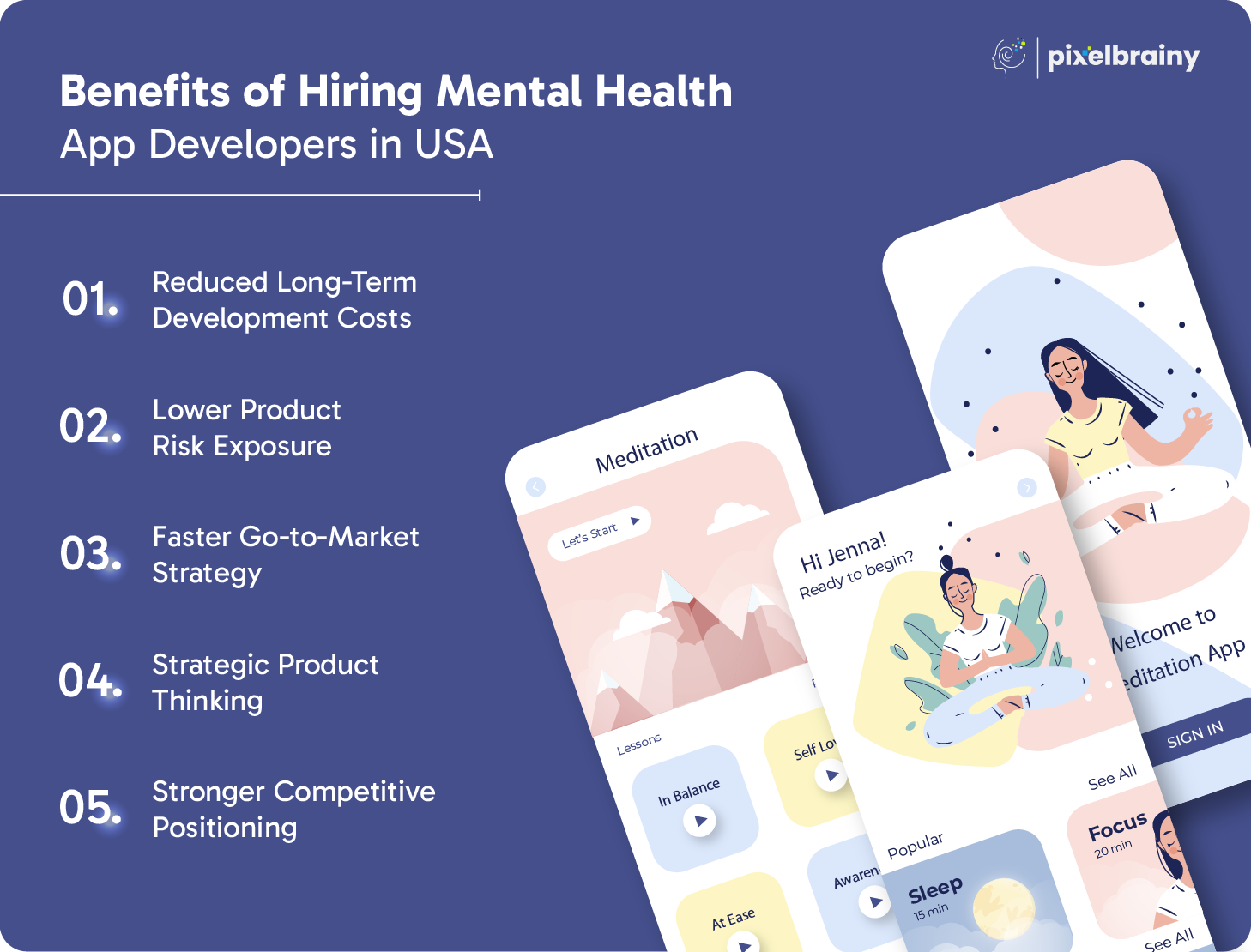 Building a mental health app is more than a technical endeavor—it’s a high-stakes, compliance-driven investment. When you hire mental health app developers in the USA, you gain more than skill—you gain strategic advantages that directly impact your product's success and sustainability.