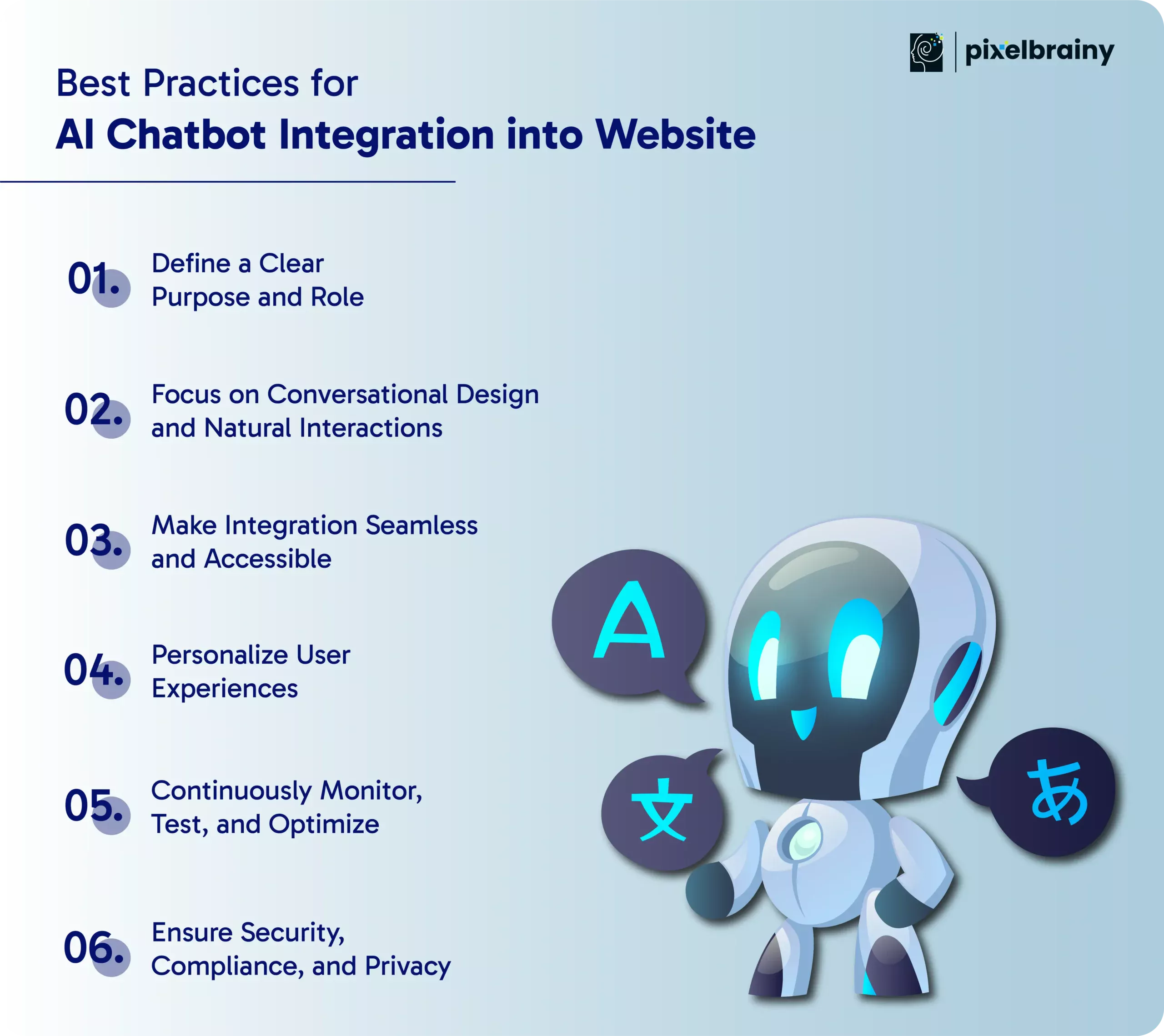 Following these best practices ensures that your chatbot is not just functional but also valuable, secure, and impactful. A well-integrated chatbot can enhance user experience, drive engagement, and contribute significantly to business growth.