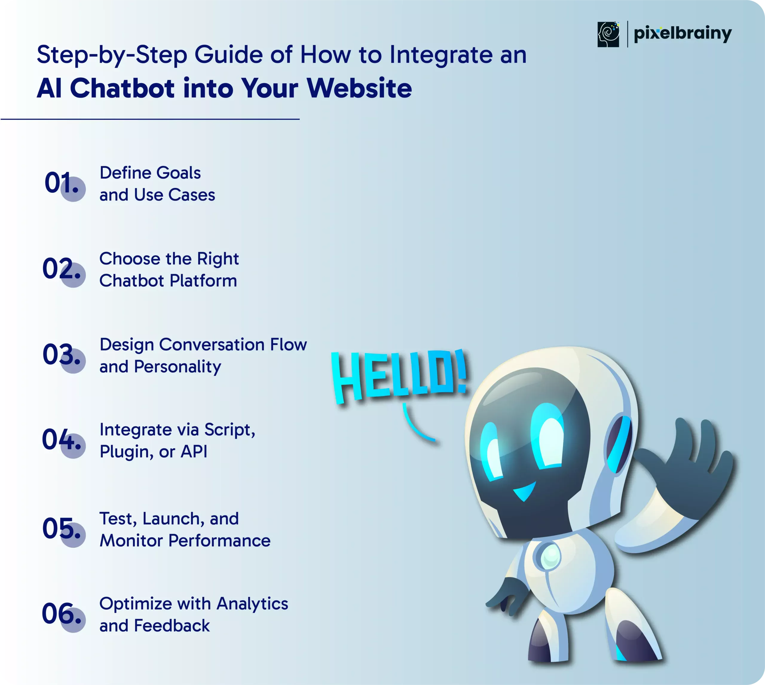 Below is a simple yet comprehensive step-by-step guide to help you achieve successful AI chatbot integration in your website.