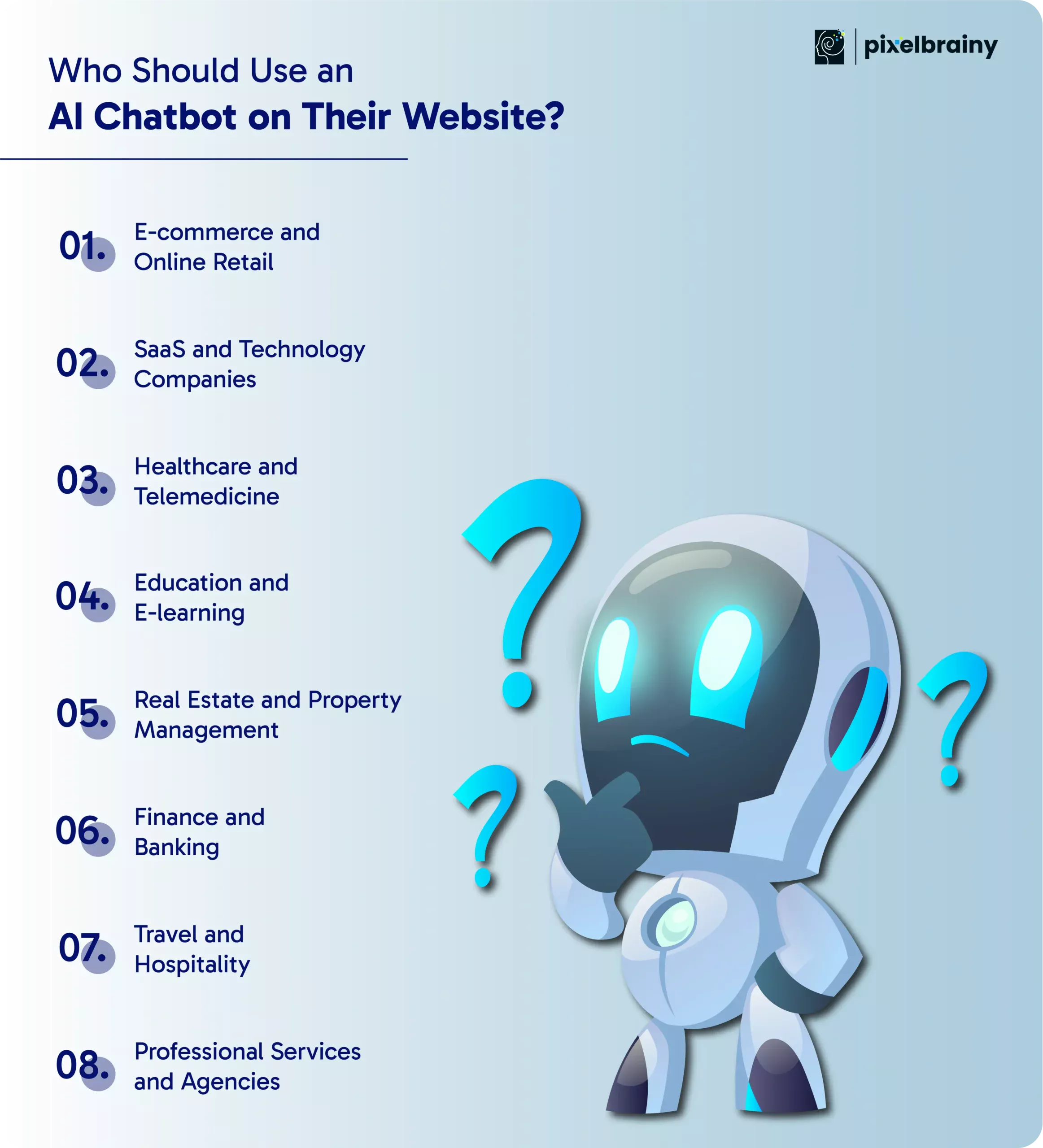 Here’s a detailed look at the industries that benefit the most from integrating AI chatbots in their websites: