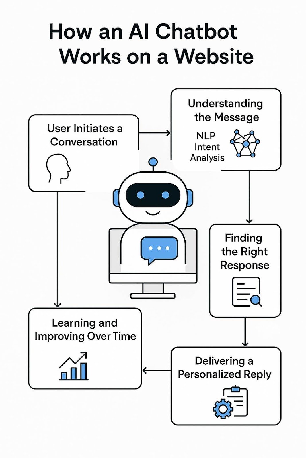 In short, integrating an AI chatbot into your website creates an intelligent communication layer that not only responds to queries but also learns, adapts, and automates tasks over time. It acts as a 24/7 assistant for your business, ensuring every visitor gets timely, personalized support that enhances their experience and drives better results.