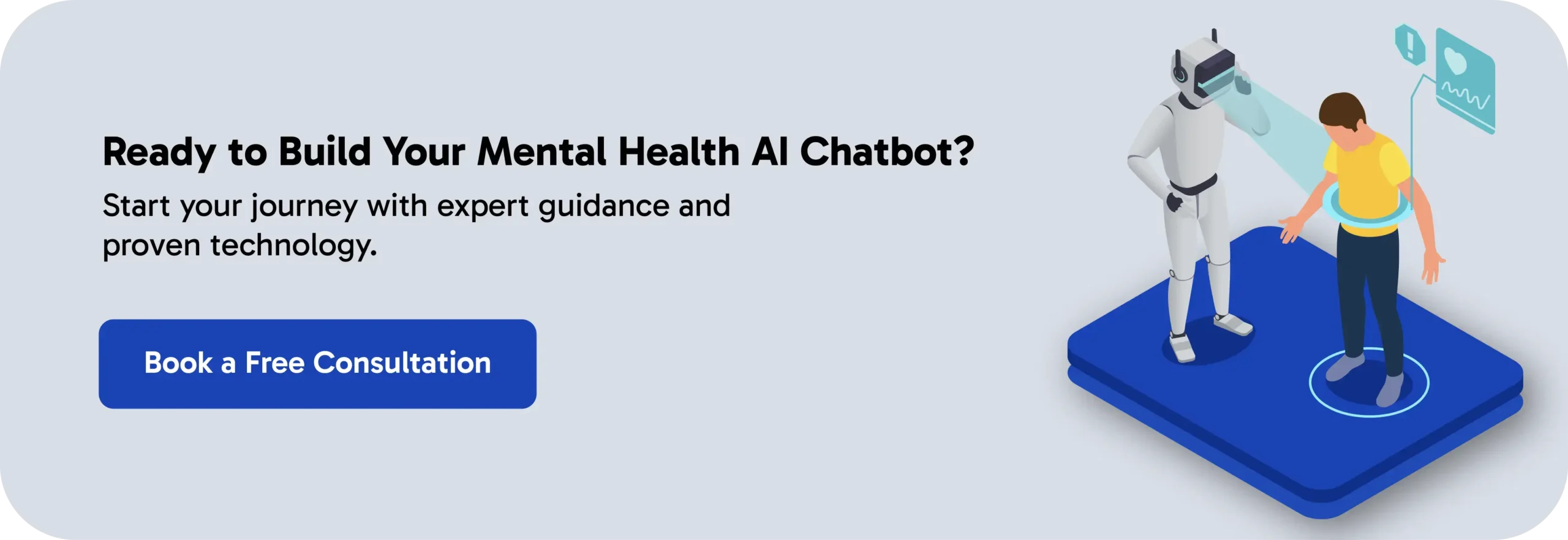 Book a free consultation with PixelBrainy—your expert partner in AI mental health chatbot development.