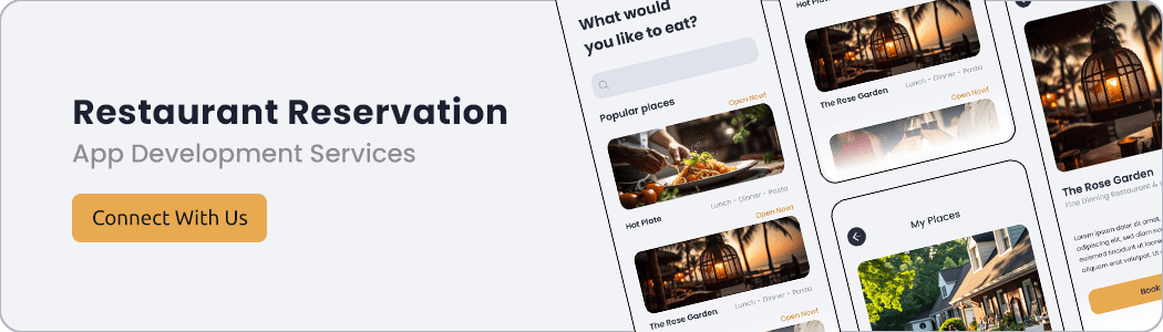 Restaurants looking to boost their bottom line may choose to develop a restaurant reservation app for streamlining reservations, accumulating valuable customer data, and reducing no-shows. Using the gathered data restaurateur can improve their operations which may boost revenue. They are opting for integrating the latest technologies to provide the expected user experience, freeing them from the usual restaurant norms.