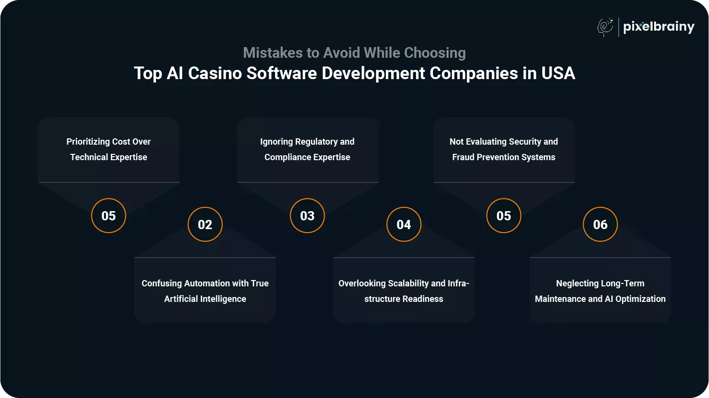 Avoiding these common mistakes ensures businesses select AI casino development companies in USA that deliver secure, compliant, scalable, and intelligent gaming solutions designed for sustainable long-term growth.