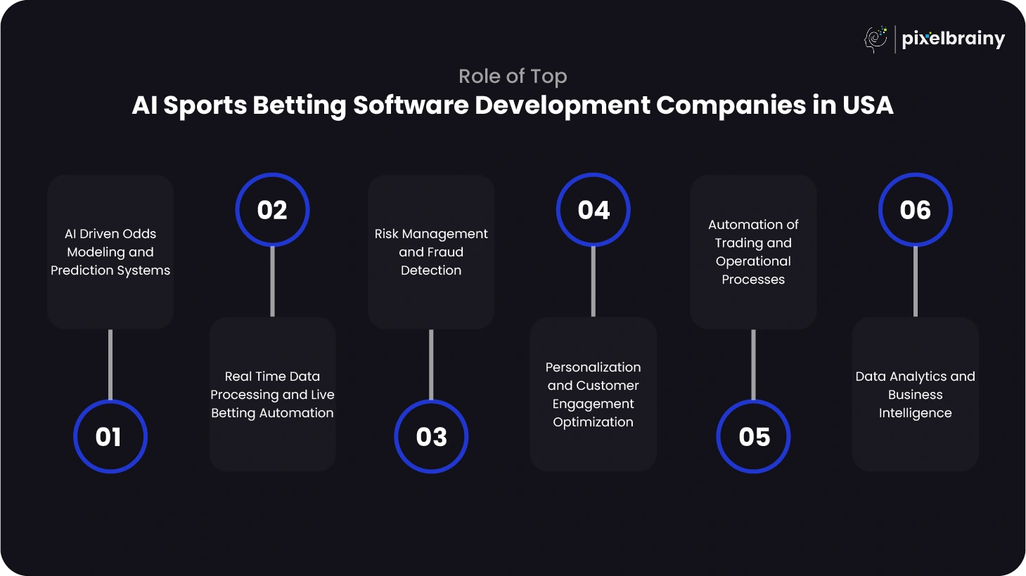 PixelBrainy LLC stands out as a top AI sports betting software development company in USA known for delivering custom AI-driven sportsbook platforms tailored to modern betting operators. The company specializes in building scalable and intelligent betting ecosystems that combine predictive analytics, automation, and real time processing.