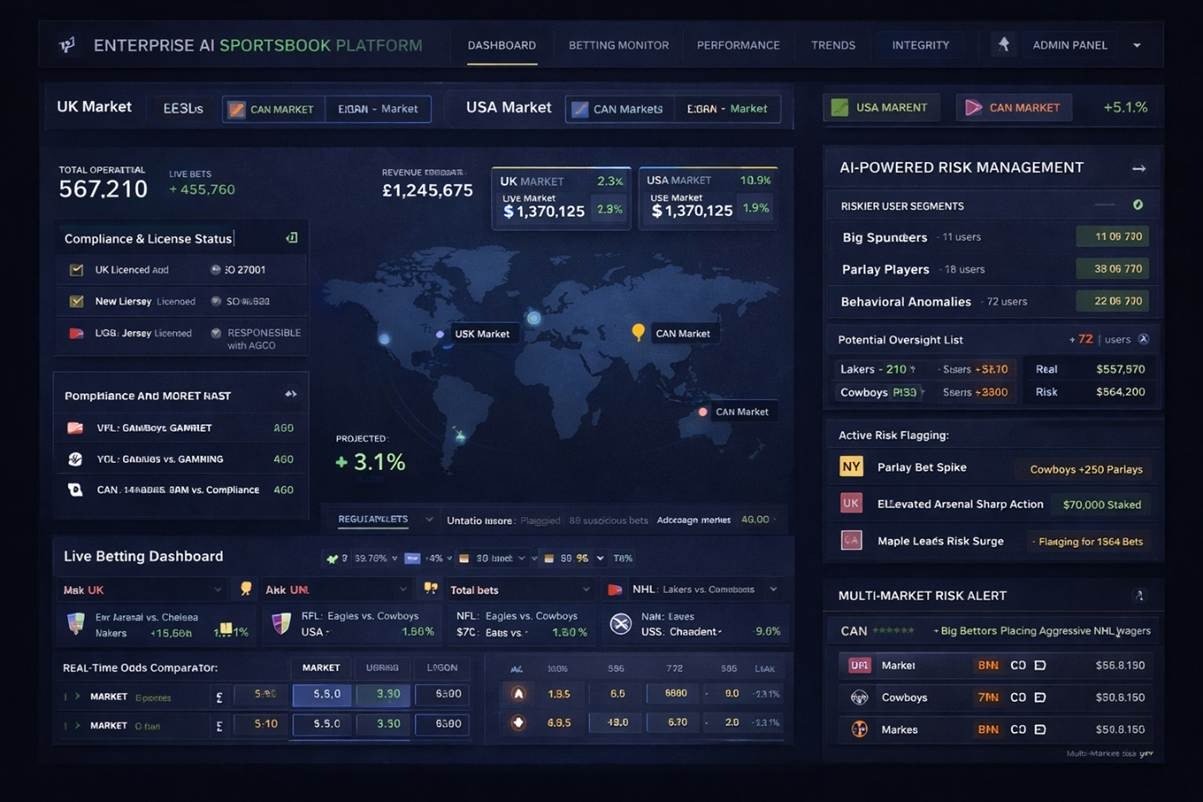 Another critical role of enterprise AI sports betting software solutions providers in USA involves building intelligent risk management tools. AI models analyze betting patterns, user behavior, and transaction data to identify anomalies that may indicate fraud, match fixing, or bonus abuse. Automated risk monitoring allows sportsbooks to detect suspicious activity faster than manual methods.