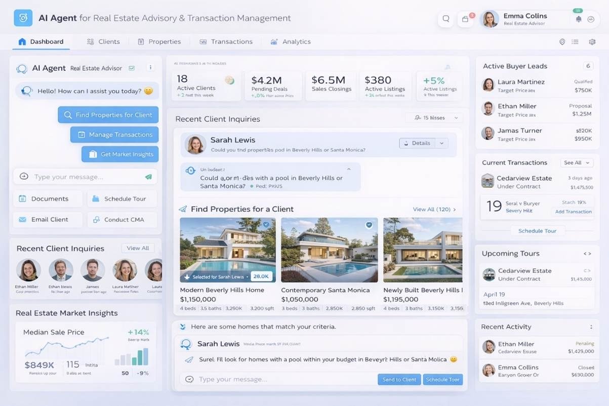 These AI agents integrate with listing platforms, CRM systems, and market data providers, allowing them to support both consumers and professional agents throughout the transaction lifecycle.