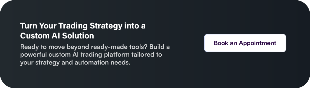 If you are looking to build a custom solution or enhance your trading workflow with advanced AI technology, now is the right time to take the next step. Book an Appointment today to discuss your AI trading software requirements.