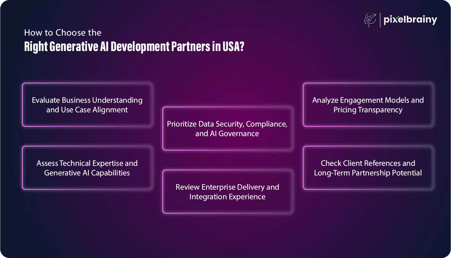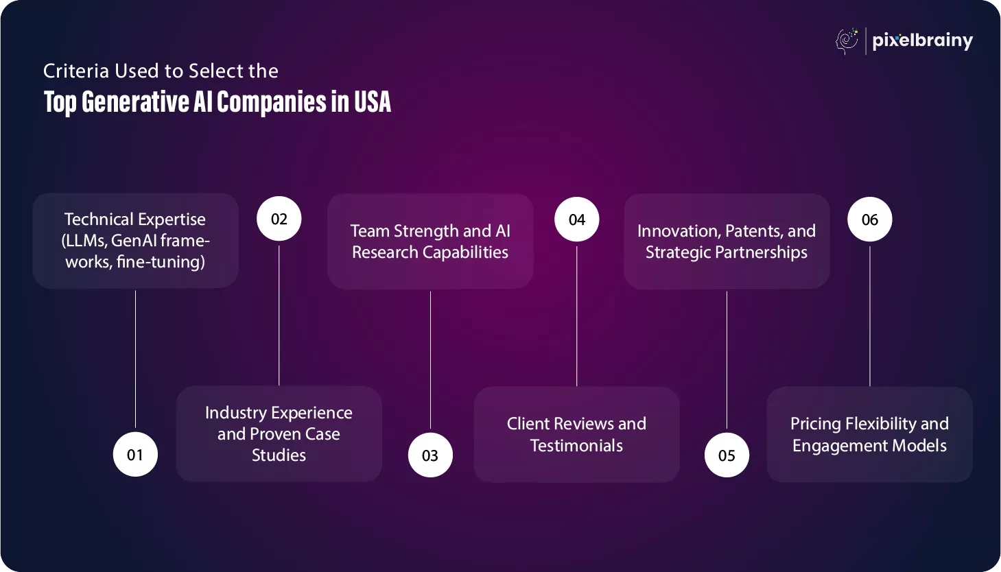 Below are the key factors to consider when evaluating USA based Generative AI Development Companies.