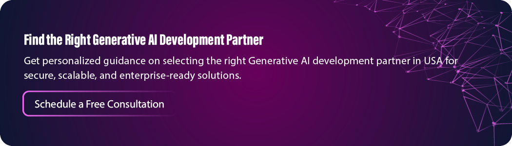 For CXOs and decision-makers, selecting from the top generative AI development companies ensures access to secure, scalable, and future-ready AI solutions aligned with long-term strategy. Whether your organization is exploring AI adoption or scaling existing initiatives, partnering with the best generative AI companies in USA can significantly reduce risk and accelerate value creation.