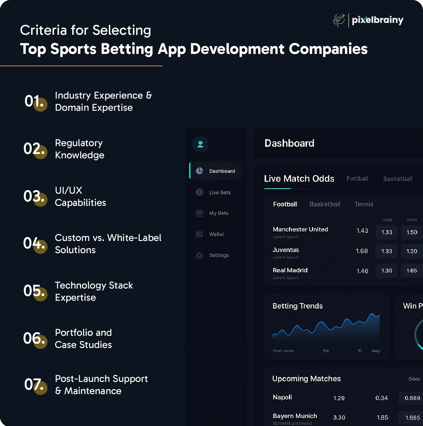 You should go for companies with real, hands-on experience creating sports betting platforms. They should also know everything relevant to betting workflows, real-time odds, payment gateways, and in-play features.