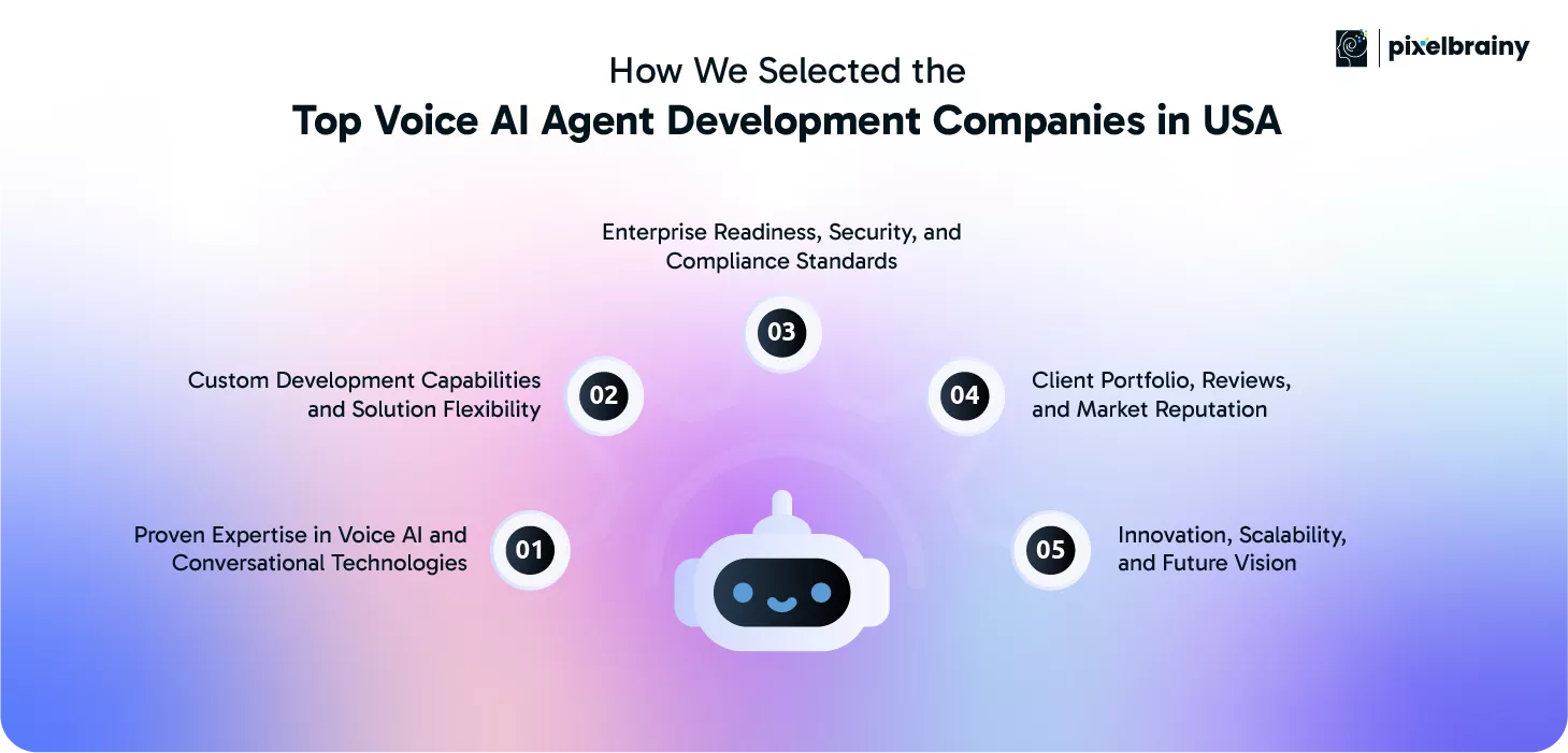 Identifying the most reliable and future ready Voice AI agent development companies USA requires more than surface level research. Our selection process was designed to evaluate both technical depth and real-world delivery capabilities, ensuring that the companies listed are well equipped to support businesses in 2026 and beyond.
