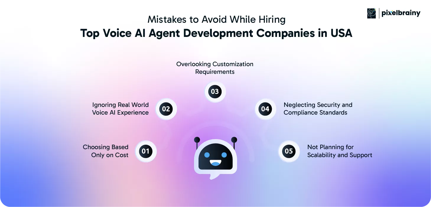 Even with a growing number of Voice AI Agent Companies in USA, selecting the wrong partner can lead to poor performance, wasted investment, and delayed outcomes. Understanding common mistakes helps businesses make informed decisions and successfully collaborate with the Top Voice AI Agent Development Companies in USA.