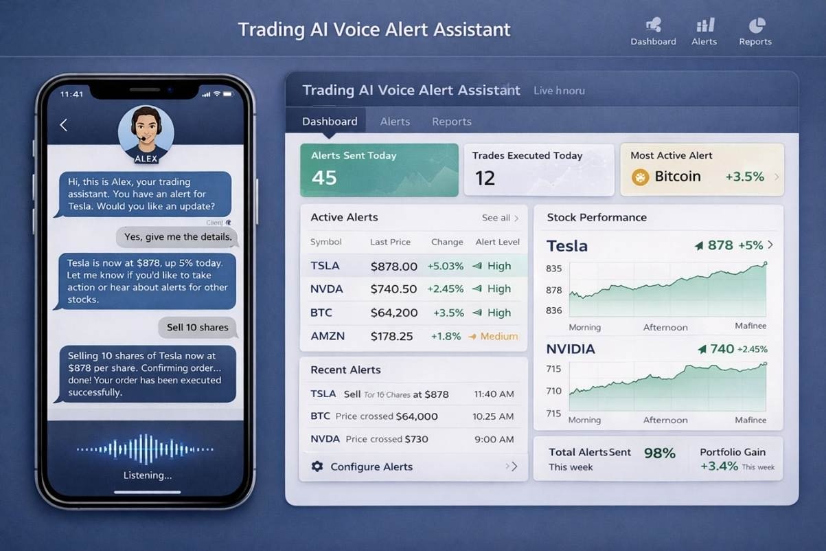 5. Trading: Voice driven agents deliver real time market updates, alerts, and account interactions, allowing traders to access critical information quickly without manual system navigation.