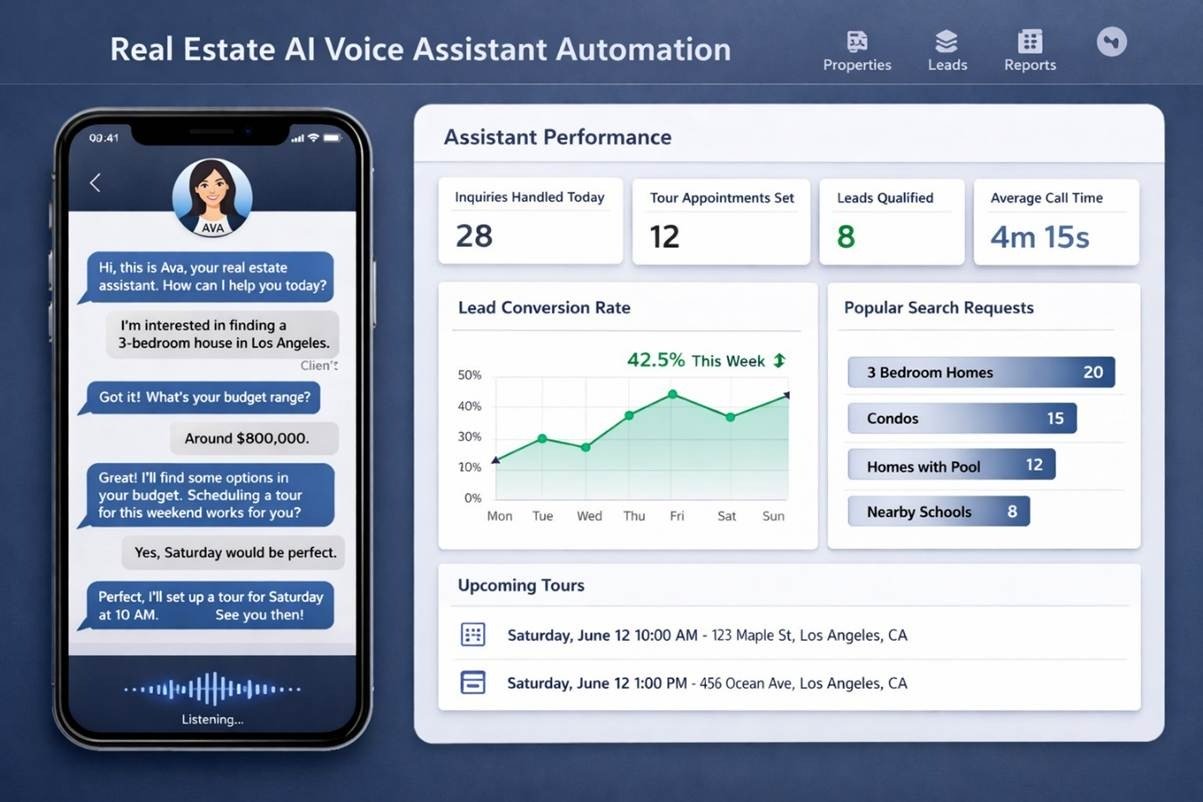 Project Overview: Built an intelligent voice solution to handle high volumes of inbound property enquiries, respond to common questions, and manage tour scheduling for a growing real estate firm.