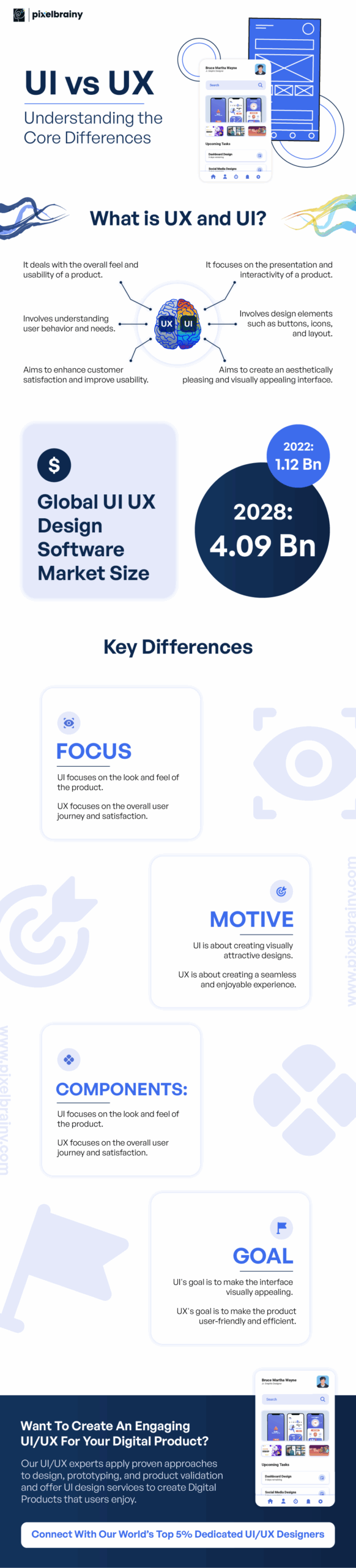 This infographic highlights the key differences between UI and UX to help you understand their impact on product design.